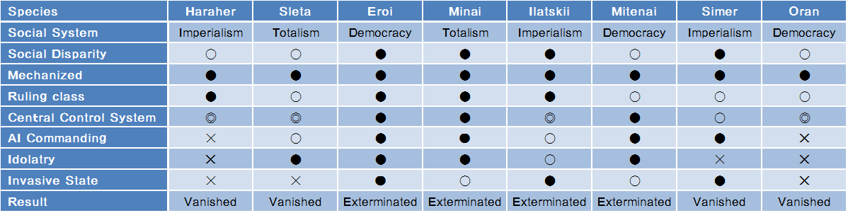 Chart A倐: The conducts of the Universal Species